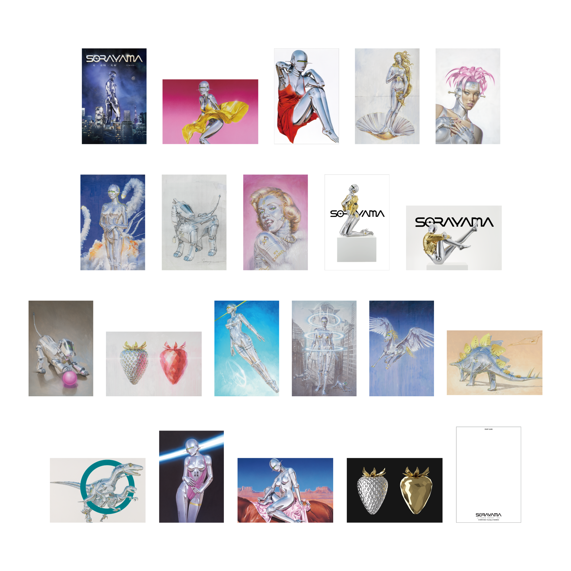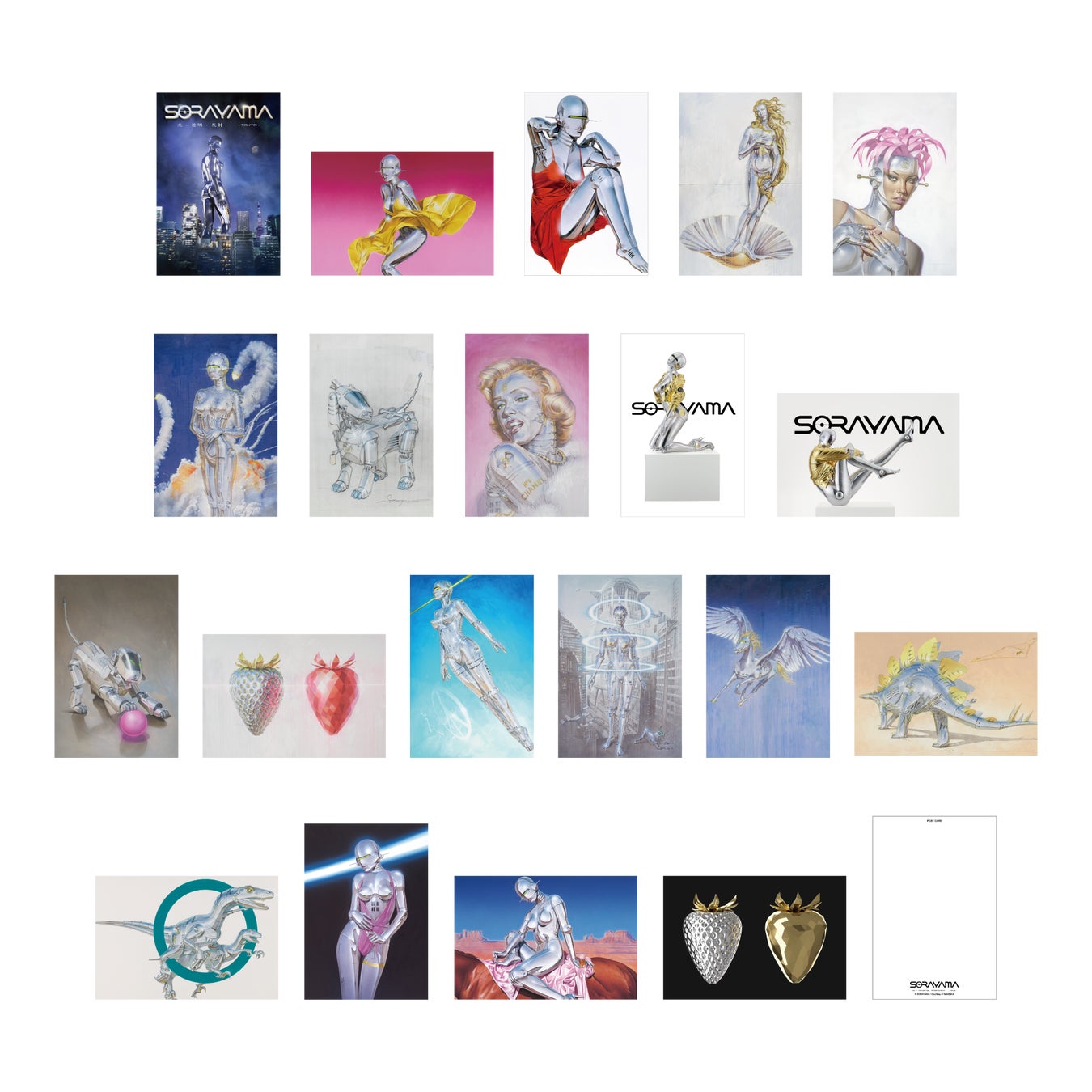 本展覧会キービジュアルや空山基作品から厳選した全20種のポストカード。