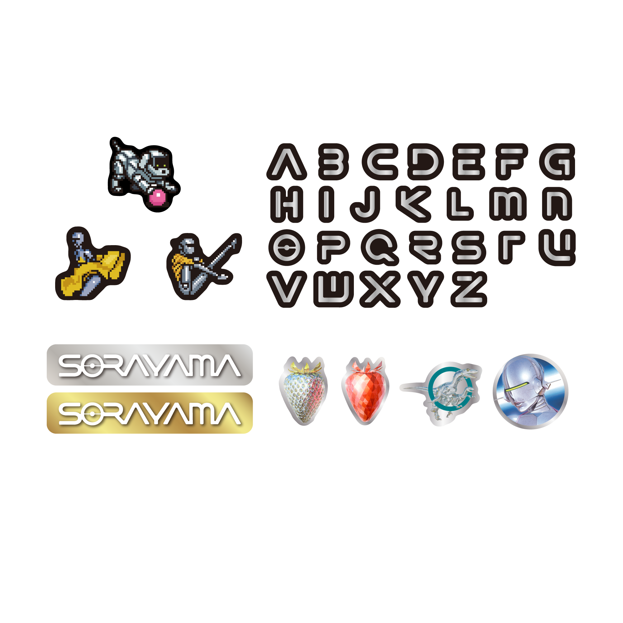 空山基によるSORAYAMAフォントのアルファベットやロゴをはじめ、作品群やピクセルシリーズのワッペンが登場。お好きな展覧会グッズやご自身のアイテムにも付けることの出来るアイロン圧着タイプ。ワッペンの裏面はシール仕様のため、アイロンを使わずに貼ることもできるカスタムアイテム。
