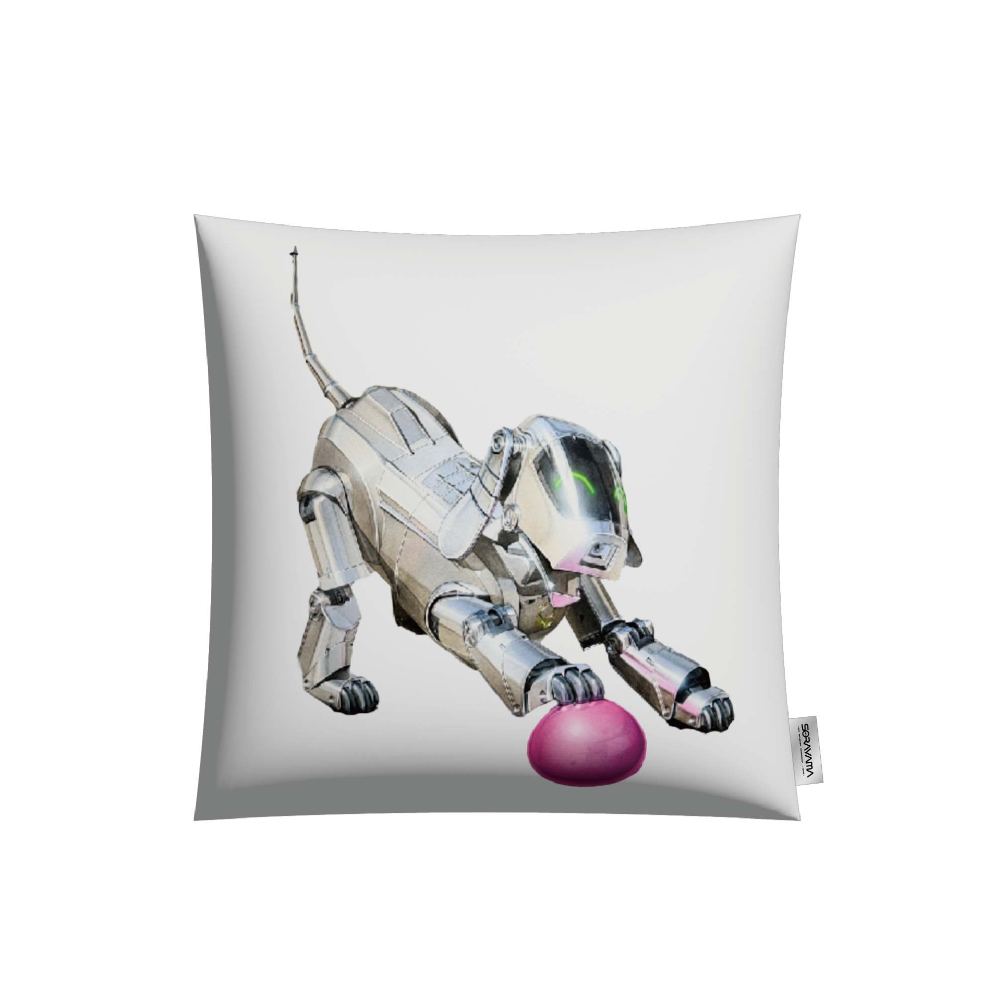 合皮素材のクッションカバー、両面それぞれ異なるアイボを大きくあしらったデザイン。