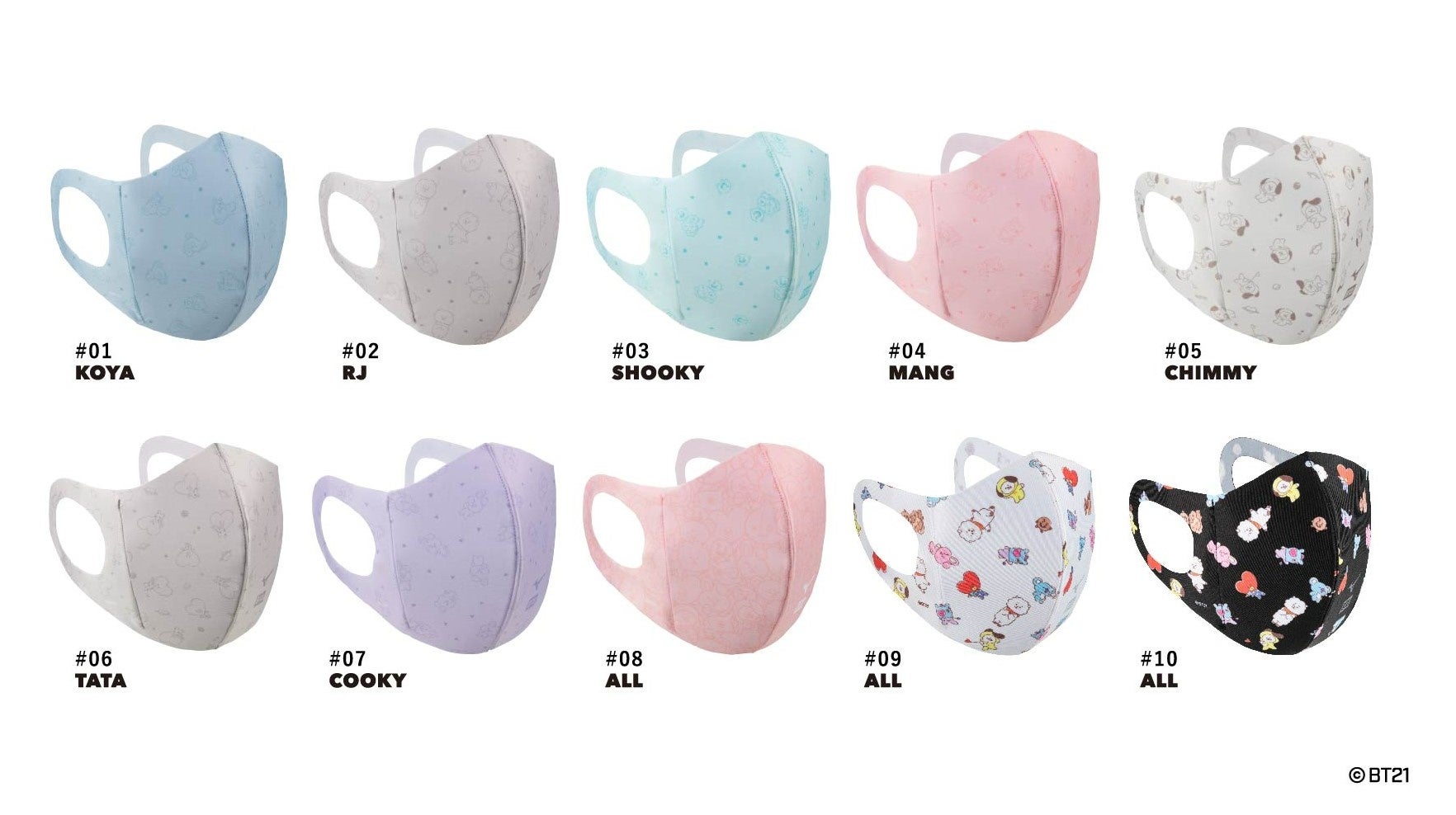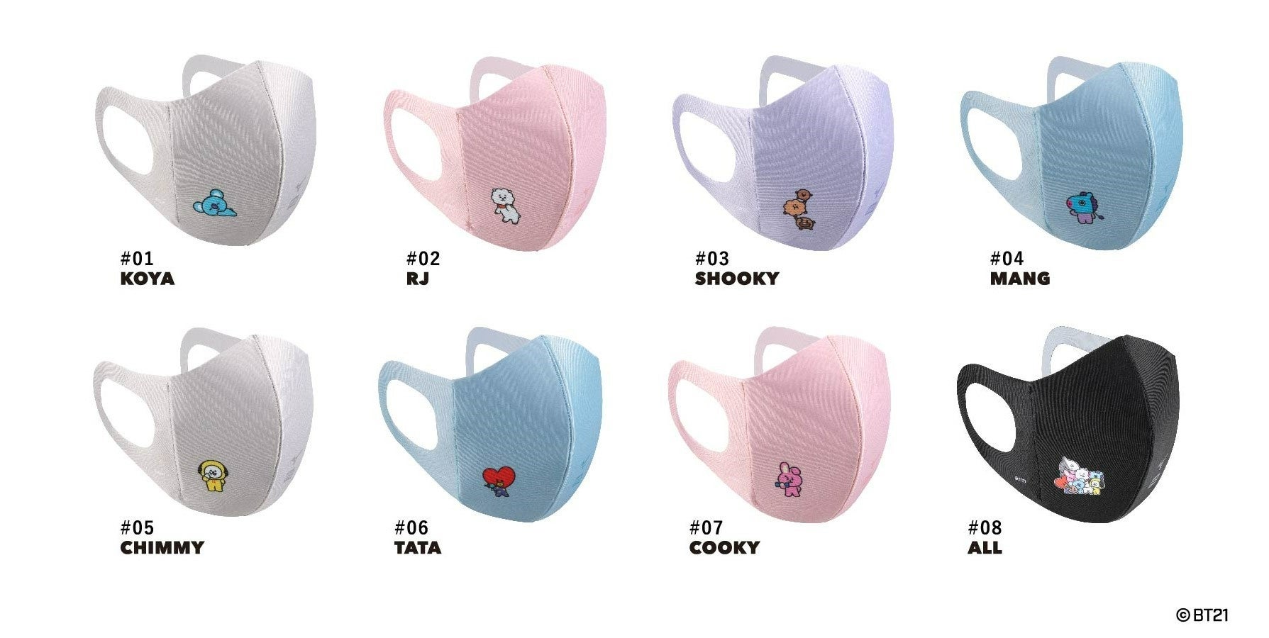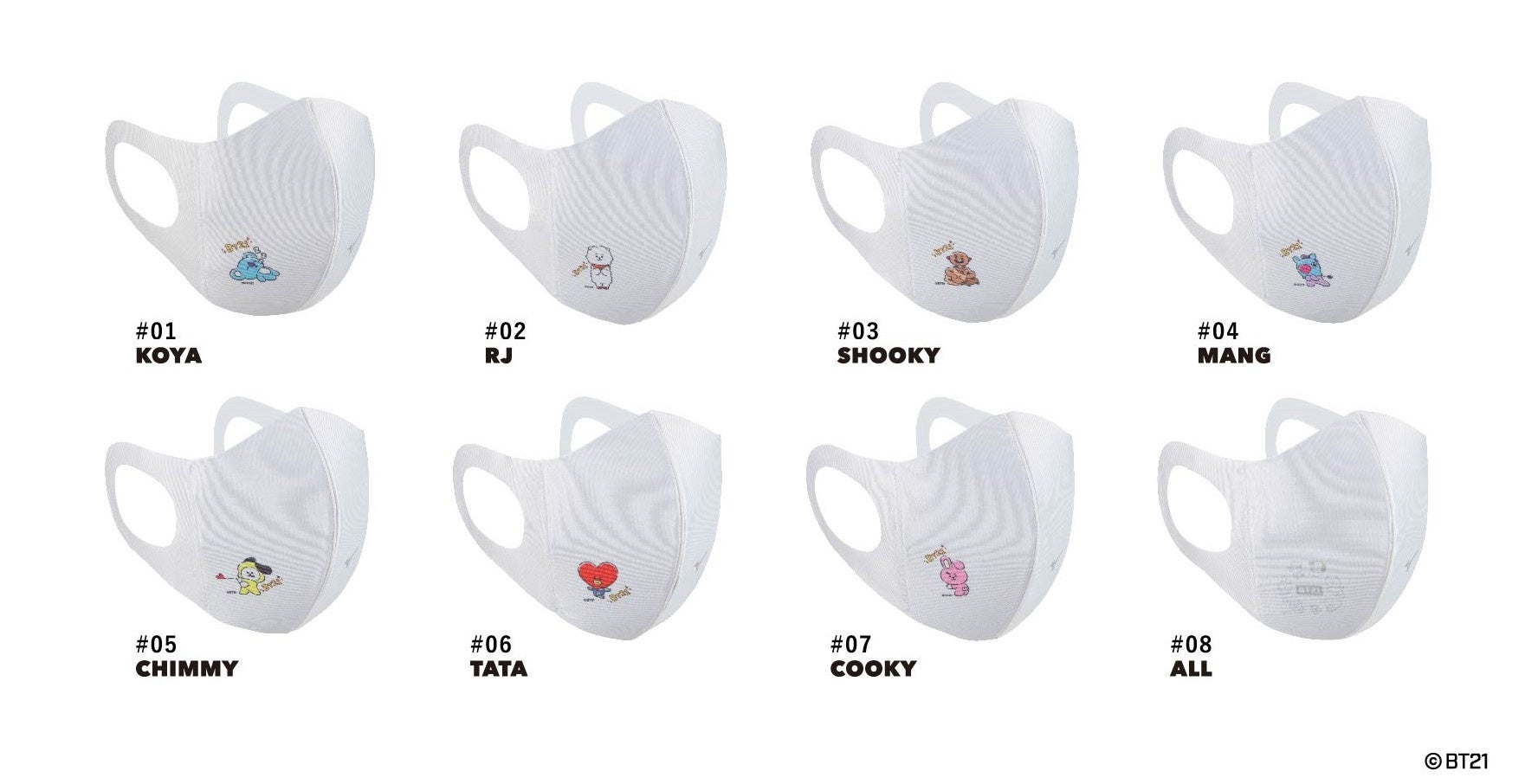 ( https://p-bandai.jp/fashion/ )、ミズノ公式サイト(https://jpn.mizuno.com/mouthcover/bt21)
