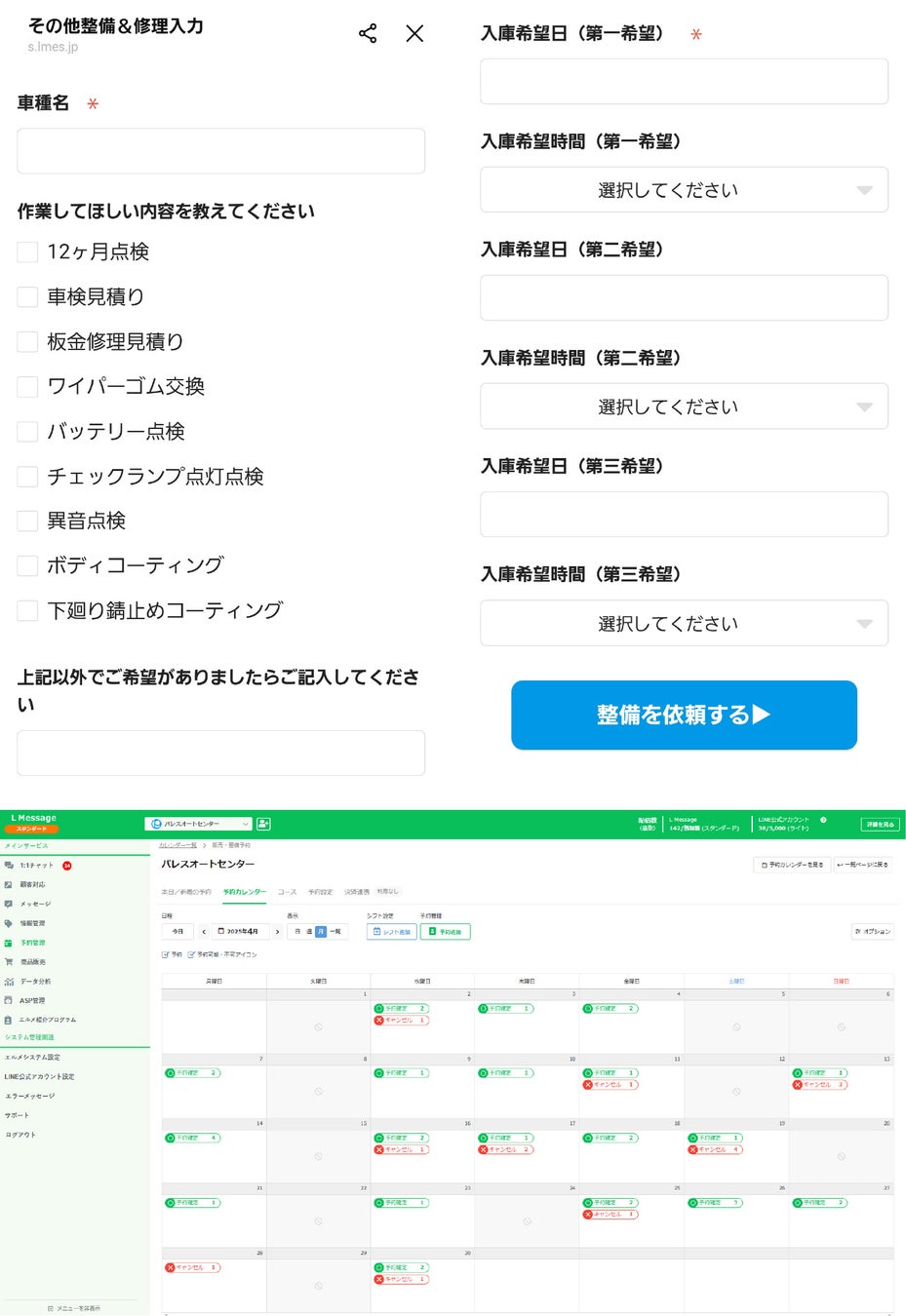 L Messageが提供するカレンダー形式の予約機能を導入し、来店目的に応じた予約メニューを明確に分岐。