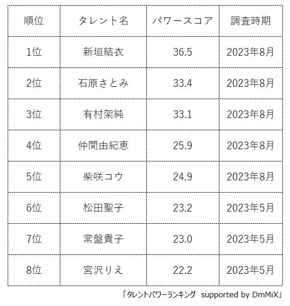 本ランキングは、2023年8月度に実施したタレント調査データ(一部過去実施データ)を利用し、タイトルに応じてランキング形式でまとめたものです。