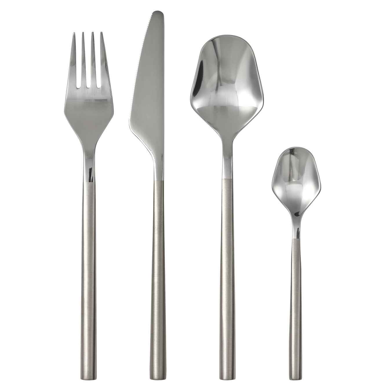 すっきりとしたラインと持ちやすい細くて長い柄が特徴のどんな食器にも合わせやすいエレガントなカトラリー16点セット。 家族とのくつろいだ平日のディナーだけでなく、お祝いのテーブルにぴったりです。