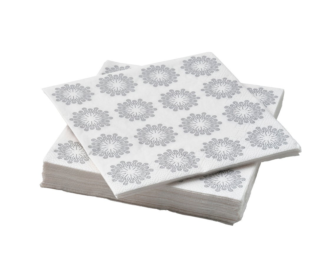 雪の結晶のようなデザインのエレガントな紙ナプキン。おしゃれなナプキンを使えば、すばやく簡単にテーブルコーディネートをより魅力的に演出できます。