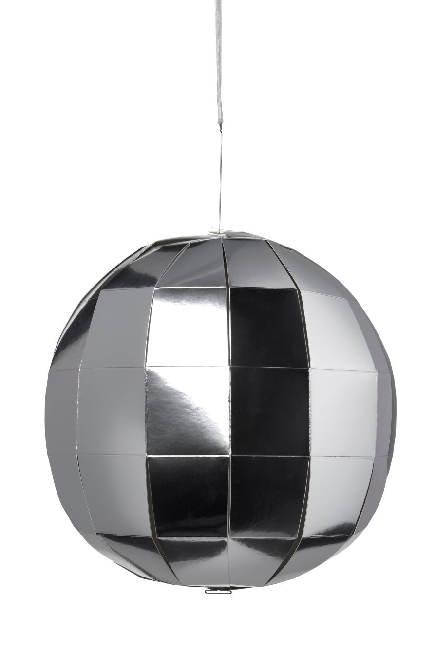 シルバーに輝くミラーボールが1個またはいくつかあれば、パーティーはより華やかな雰囲気になります。今年はいつもより少し派手なパーティーを演出してはいかがでしょうか? 低価格で簡単にミラーボールが手に入ります。フラットパックに入っていますが、簡単に広げられます。使用後はまた平らにして、次のパーティーまでしまっておけます。