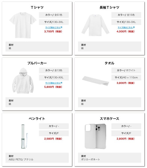 価格 :Tシャツ1枚1,100円(税込み)から ※プリント代込み、100枚以上まとめて割適用
