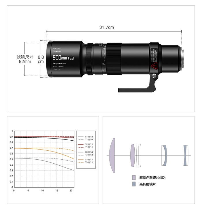 驚異的な望遠距離:500mmの焦点距離で、このレンズは遠くの被写体を撮影したり、野生動物やスポーツの動きを間近で撮影したりするのに最適です。このレンズはフルフレームセンサーをカバーしており、美しい風景や都市景観を簡単に撮影することができます。