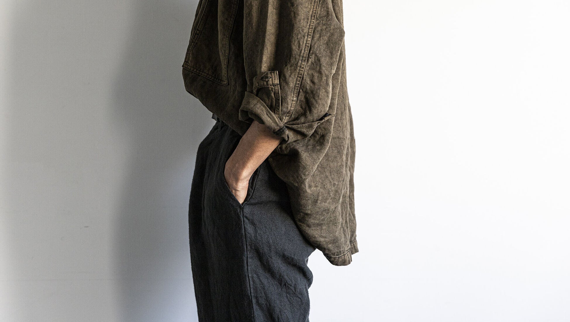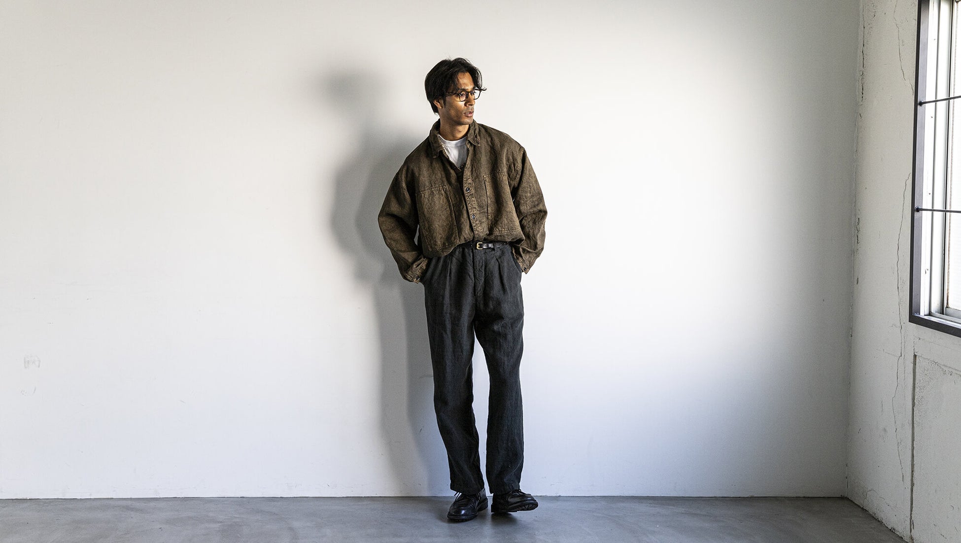 スタンダード、シンプル、トラッド、ミリタリー、ワーク、トラッド、クラシック、モダン…etc。メンズ服の普遍的な要素を根底におきながら、染め、洗いを駆使しながら独自のバランスで融合させた服作りをコンセプトにしています。