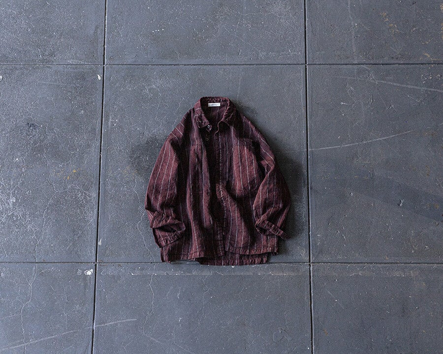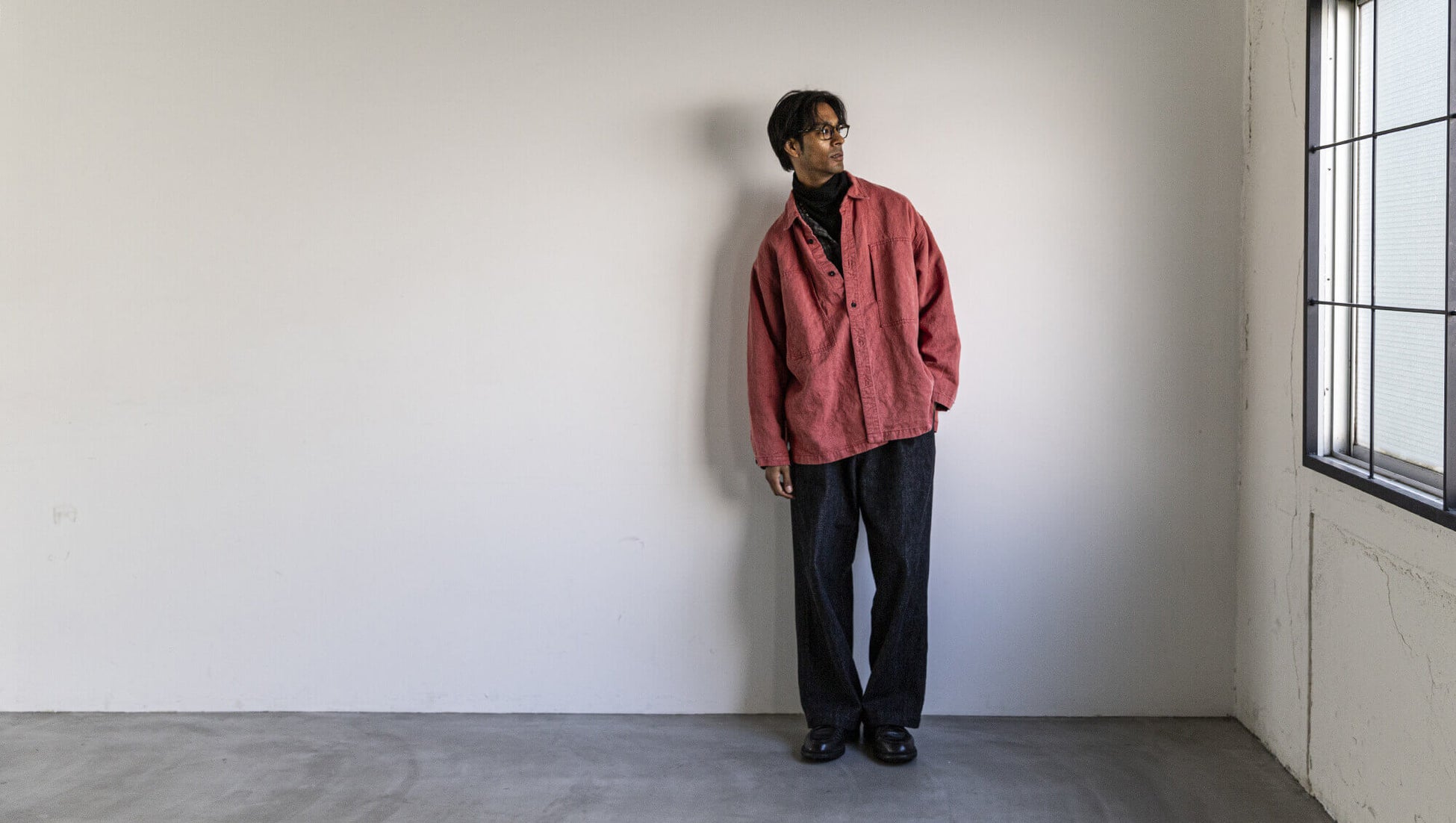 2025年1月2日(木)、2025年最初の新作として、新しい視点となる原色のカラーデニムを用いて、FADEとINK DYEという対比的色表現を駆使して新型のワークシャツをご用意しました。