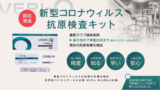 MiCo BioMed(KOSDAQ市場:214610)の日本法人である「Mico BioMed Japan」は、3日間限定で、『VERI-Q 新型コロナウィルス抗原検査キット』の購入に使える年始オフィスワーク応援割引クーポンを発行いたします。即日出荷します。
