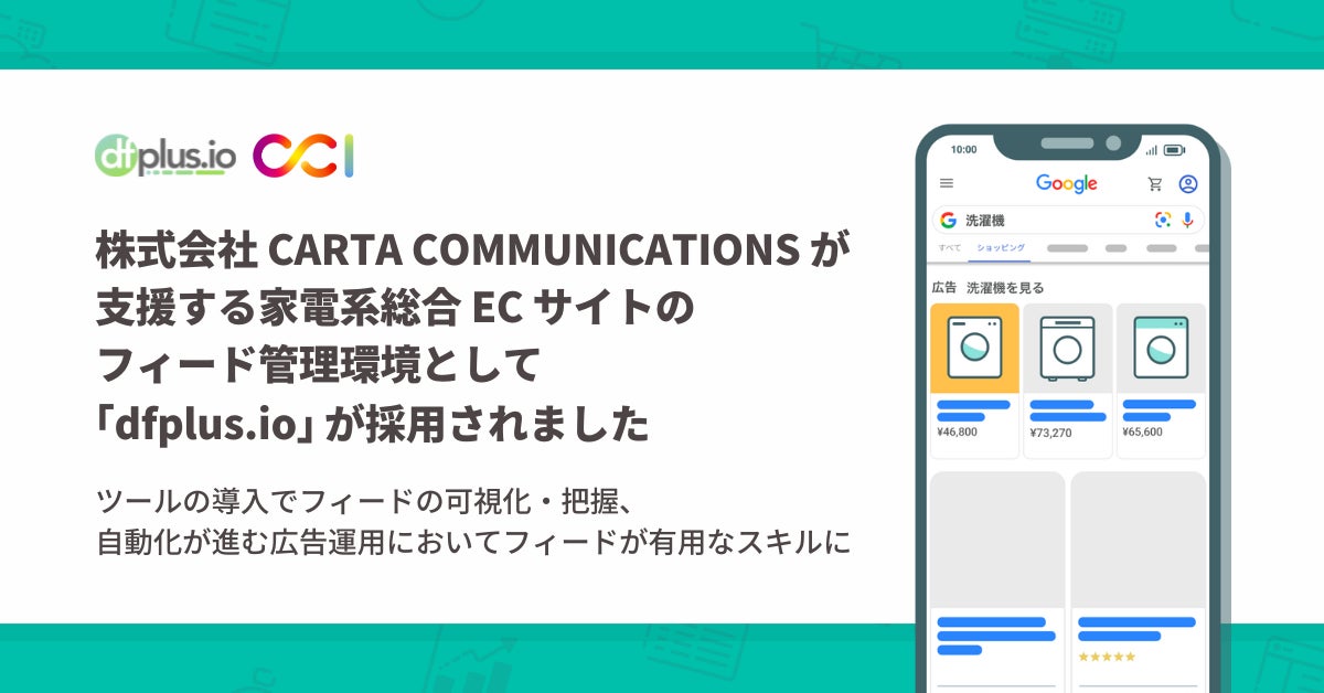 株式会社CARTA COMMUNICATIONS が支援する家電系総合 EC サイトのフィード管理環境として「dfplus.io」が採用されました