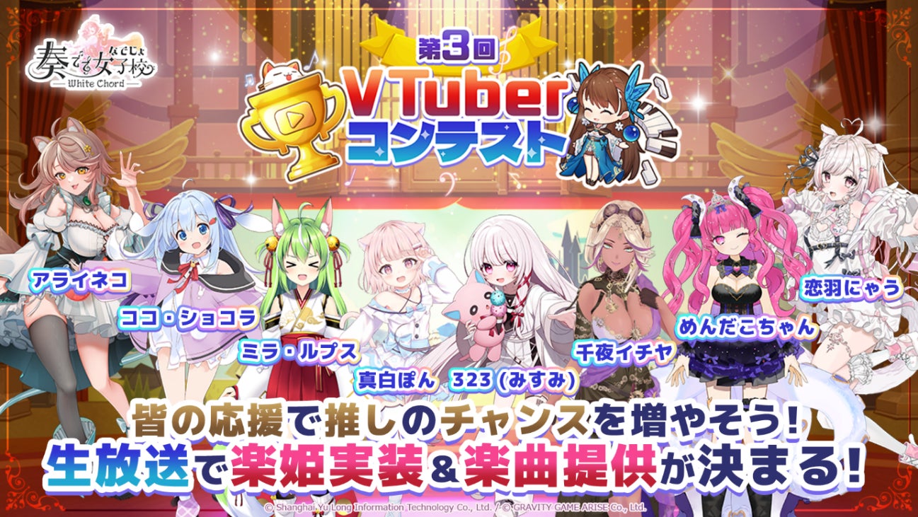 【奏でて女子校 ~ なでじょ ~】3月28日(木)より、第3回VTuberコンテスト開催!さらに、3月31日(日)より、VTuber『茸茸鼠(コマメ)』とのコラボも開催!