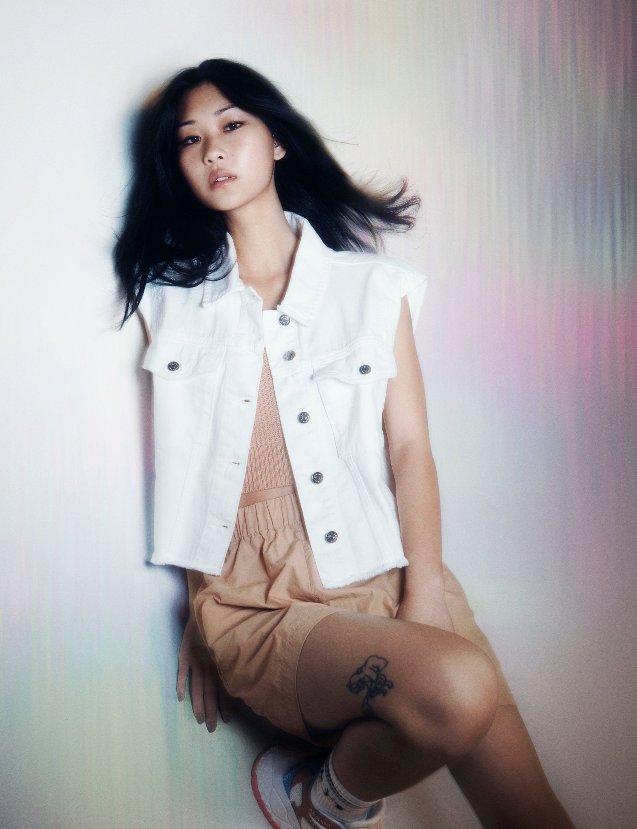 時には一人で、時には二人で、ダンスを踊っているかのようなダイナミックなポーズが写しだされ、ジェンダーの区別なく自由な感覚でセレクトされ、コーディネートされたアイムがそのポージングをより鮮明にします。