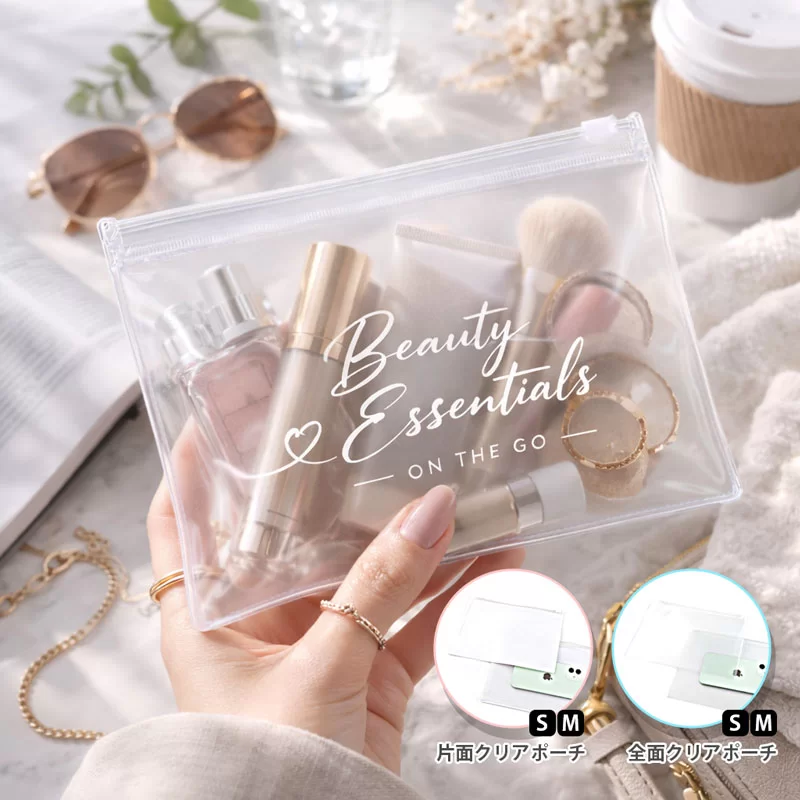 クリアポーチの素材特性(透明感・質感・耐久性)を整理し、用途や仕上がりイメージに合わせた選び方を解説。素材理解によってデザインの見え方や完成後の満足度を高めるための基礎知識をまとめています。