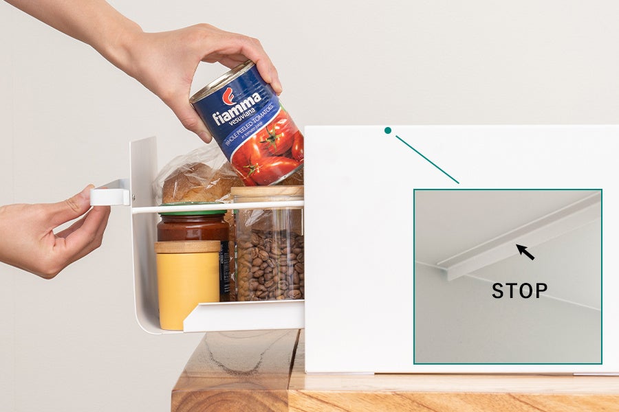 キッチン収納にお悩みの方はマストバイ!ストック食材や調理器具、調味料などをひとまとめに収納して生活感をカバーできる「ブレッドケース」をmottoleより新発売。