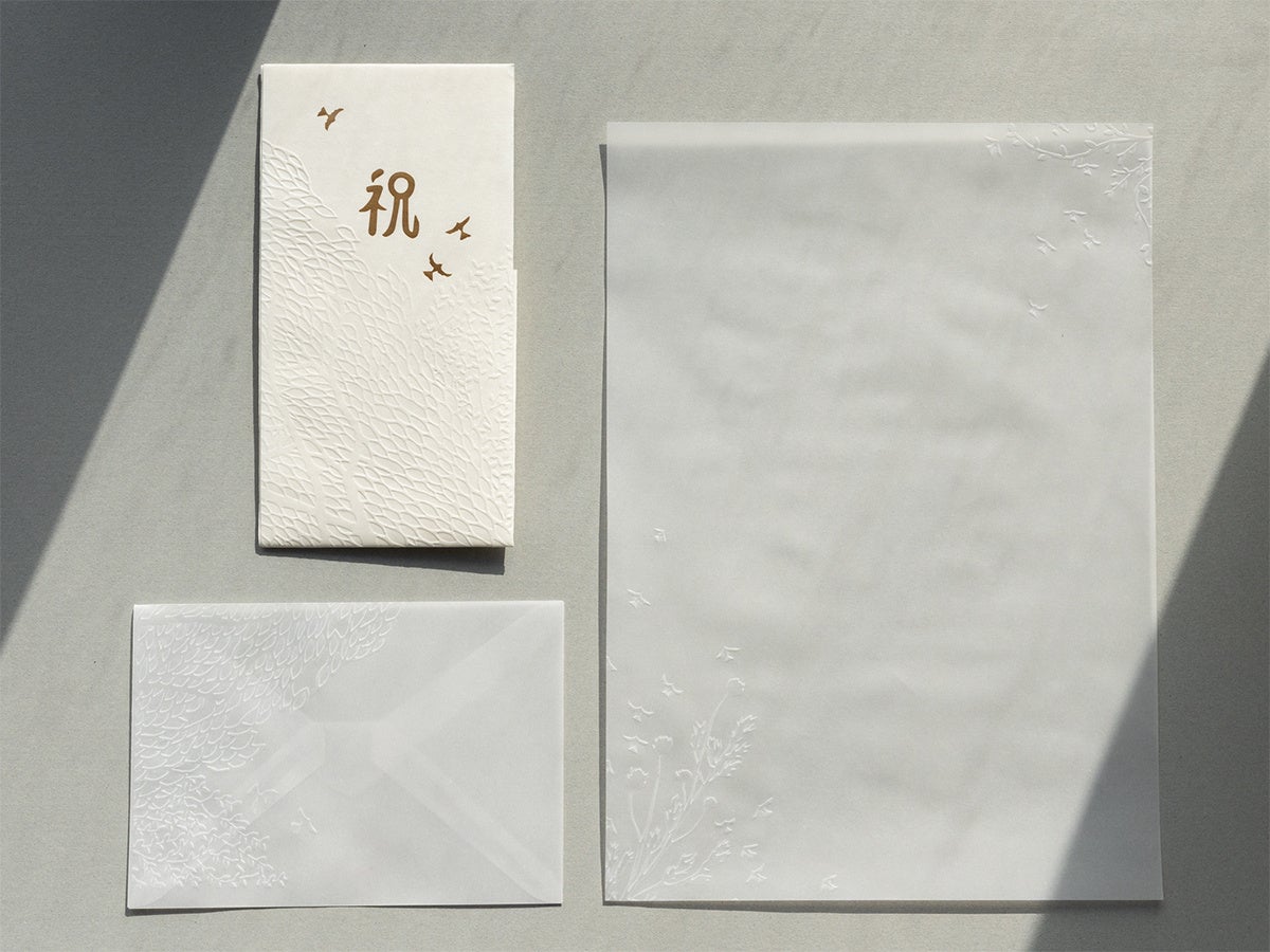 当会場限定のコラボグッズを紹介します。本展作家の柴田あゆみさんと、1931年創業・北海道の老舗紙工会社「北海紙工社」が、紙の種類・デザインをこだわり抜いて制作した封筒・便せんセットとお祝い袋。柴田さんの素敵なオリジナル切り絵デザインがあしらわれた、札幌会場でしか購入できないグッズです。ぜひお買い求めください!