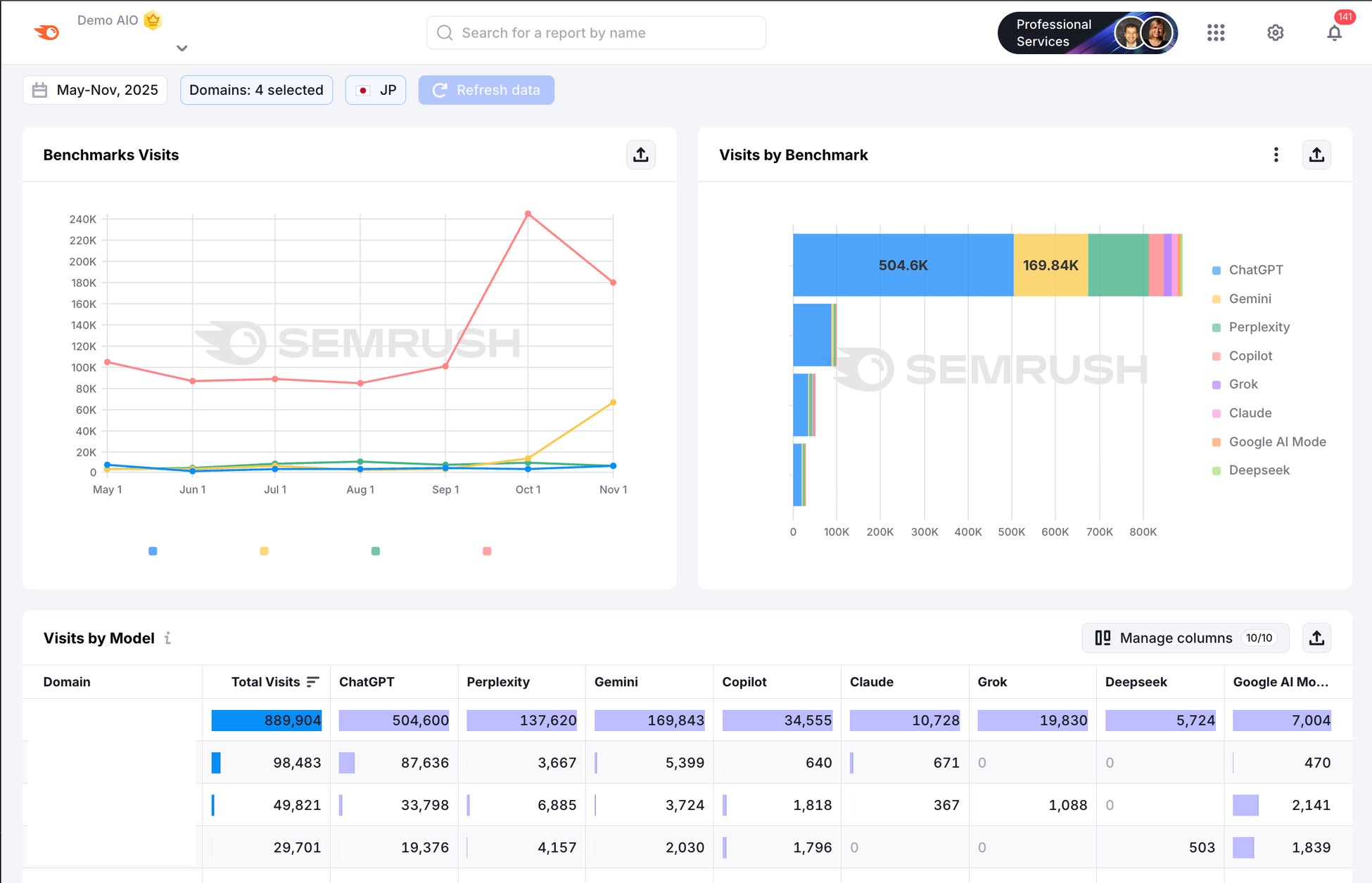 株式会社オロ(本社:東京都目黒区、代表取締役社長執行役員:川田 篤、以下「オロ」)は、当社が国内総代理店を務める「Semrush」(Semrush Holdings Inc.:米国マサチューセッツ州、CEO:Bill Wagnerが提供するサービス)において、「Semrush Enterprise AIO」の日本向けデータへの対応および販売開始をお知らせいたします。