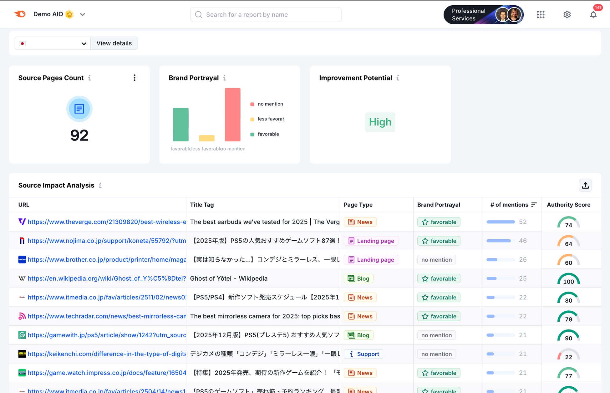 GoogleのAIによる概要(AI Overviews)やAI Mode、ChatGPT、GeminiなどのAI検索の影響が急速に拡大する中、従来型の検索トラフィックが減少することが懸念されています。オンライン上でのプレゼンスを高めるため、マーケターは自社のブランドや製品・サービスがAI検索でどのように言及されているのかを把握し、順位を改善するAI検索最適化(AIO、LLMO、GEO)の必要に迫られています。