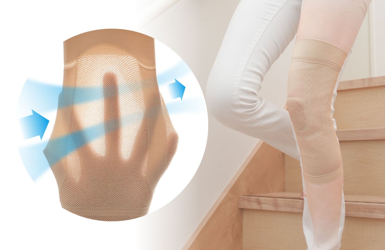 薄型なのに、ぴったりフィット!ストレッチ性とホールド力を兼ね備えたサポーターでつら~いひざ曲げ伸ばしをサポート