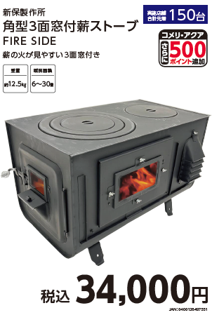 商品名:新保製作所 角型3面窓付薪ストーブ FIRE SIDE