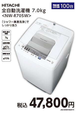 商品名:日立 全自動洗濯機7.0kg ホワイト<NW-R705W>