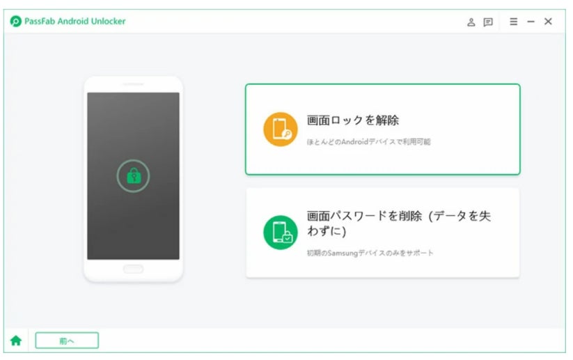 AQUOSのロックが解除できない時の対処法を紹介する前に、まずご紹介したいのはAQUOSを除く他のAndroidの画面ロックを解除する方法です。つまり、専用ツールPassFab Android Unlockを使用すればパスワードがなくてもロックを解除できます。PassFab Android Unlockはワンクリックで Android パターン、PIN、指紋、パスワードのロックを解除できるソフトで、画面のガイダンスに沿って、数ステップで簡単にロックを解除することができます。一部、Samsungデバイスの場合は、データを失わずに画面ロックを解除することが可能です。では、その使い方を詳しく紹介いたします。
