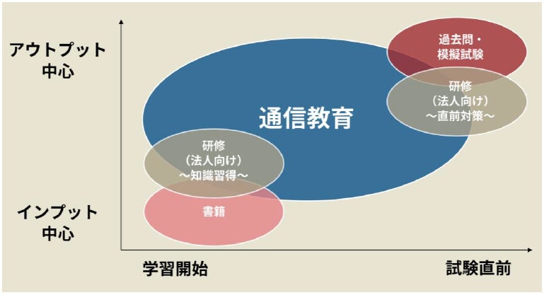 非IT企業社員の学び方と学習フェーズに応じて「通信教育」「研修」「書籍」「過去問・模擬試験」といった4つの学習手段を提供します。実際の企業にご利用いただいているおすすめ組み合わせパターンの提示を含めて、企業の目的や予算に応じたご提案をさせていただきます。