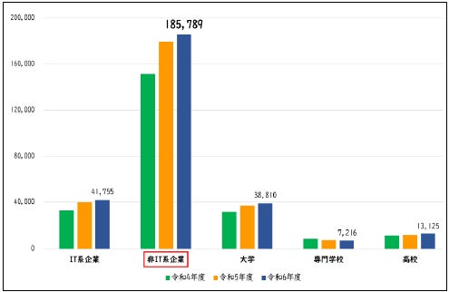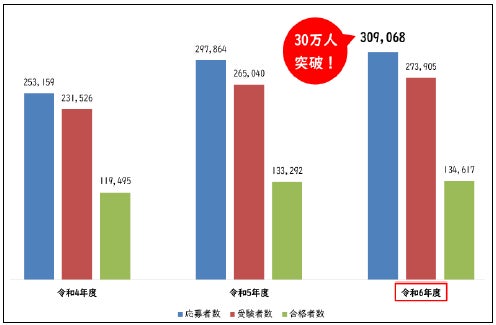 IPA(独立行政法人情報処理推進機構)の発表では、令和6年度のITパスポート試験の年間応募者数は初の30万人を突破。非IT系企業での応募者数が18万5千人と最も多い結果となりました。