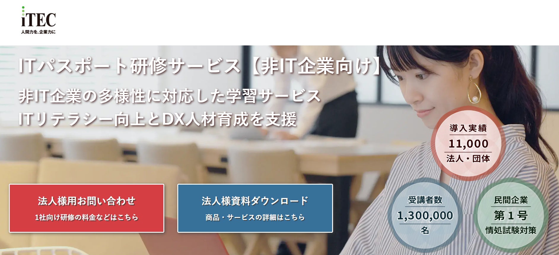 アイテックは「ITパスポート試験」をはじめとするITエンジニアの登竜門である情報処理技術者試験対策支援に強みを持ち、IT初学者のビジネスパーソンから高度IT人材まで、書籍、eラーニング、模擬試験、研修等を通じて、創業以来40年以上、企業各社様の持続的発展に貢献すべく、延べ法人11,000団体、130万人の皆様に教育サービスを提供。2022年3月には「デジタルリテラシー協議会」の活動方針への賛同を表明しました。
