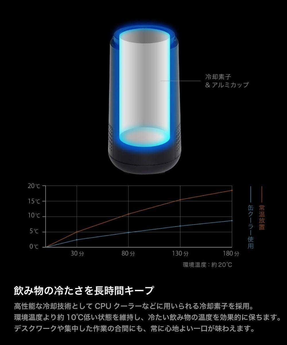 環境温度より約10℃低い状態を維持し、冷たい飲み物の温度を効果的に保ちます。