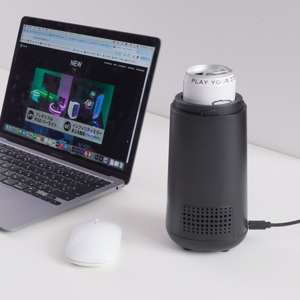 本製品は、355mlのエナジードリンク缶がピッタリ収まる、卓上缶クーラーです。