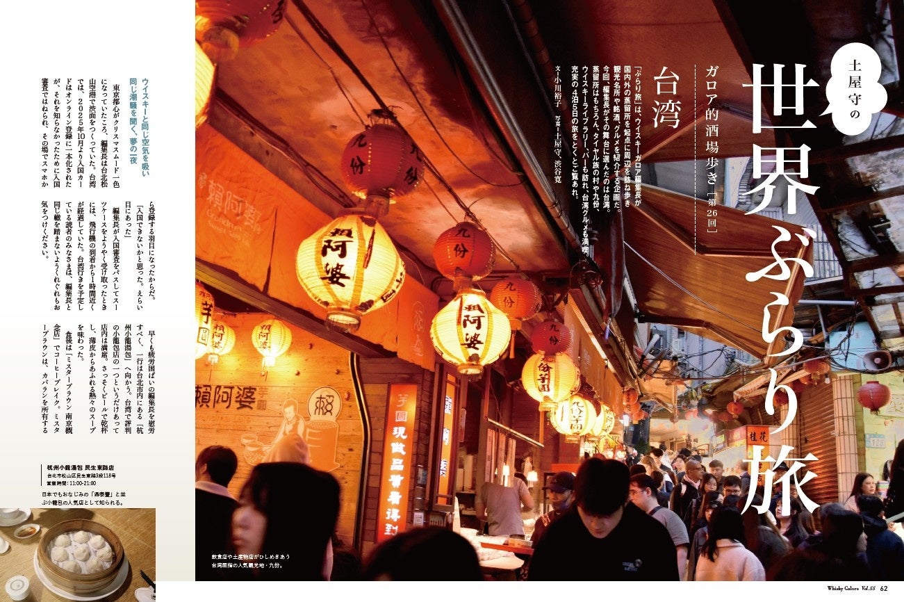 この20年、目覚ましい発展をとげている台湾ウイスキー。アジア最大のモルトウイスキー蒸留所となったカバランの現在をお伝えするほか、桃園のホテルオーナーが創業したマオウェイキ蒸留所、経営者みずから設計した設備でワンオペ製造しているバニーヴィル蒸留所など、知られざるユニークな現場を編集長が訪れました。連動企画、土屋守の世界ぶらり旅では、現地の人気観光スポットやグルメ、バー事情も!