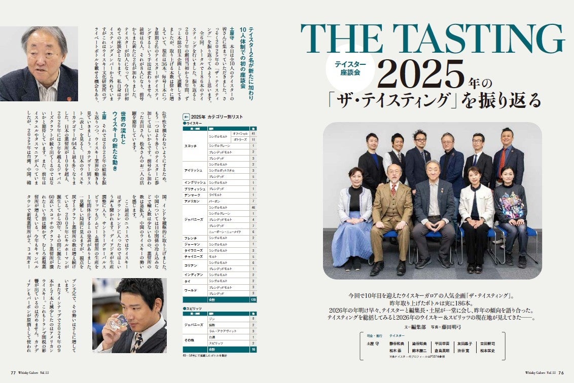 人気企画「ザ・テイスティング」の1年間を振り返る、恒例の座談会。2025年はガロアテイスターが2名増え、なんと計10名が全員集合! 2025年の傾向と、テイスティングしたボトルから選ばれたベスト30、カテゴリー別のベスト10、ベスト3について語り合いました。多様化と細分化が進む中での「評価」とは? 侃々諤々の座談会の模様をお届けします。