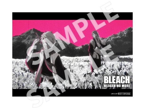 参加者には、全13問の筆記試験に挑戦いただきます。そのうち10問以上を正解された方に、ランダムで護廷十三隊のいずれかの隊のオリジナルブロマイドをプレゼントいたします。ブロマイドには、TVアニメ『BLEACH 千年血戦篇』第1クールのOP映像から抜粋した、各隊を象徴するワンシーンがデザインされています!ここでしか手に入れられないオリジナルブロマイドを手に入れるため、大好きな『BLEACH』の知識と愛を示すため、ニジゲンノモリに集結せよ!
