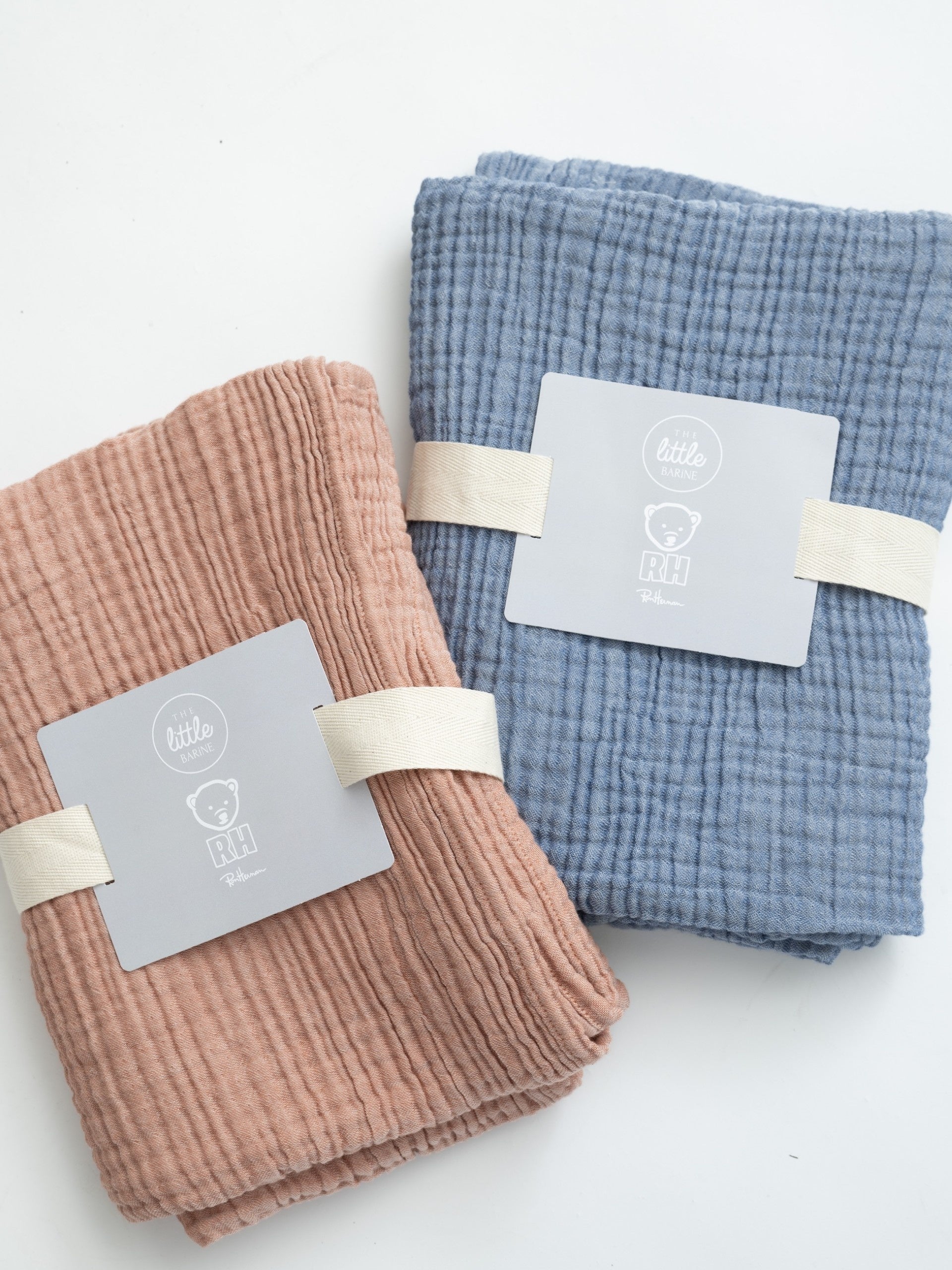 2019年より取り扱いをはじめ今もなお、人気を博しているBARiNEのベビーブランケット。今ではロンハーマンキッズに欠かすことのできない定番のベビーブランケットを初めてカラー別注しました。ガーゼ状の二重コットン生地をそれぞれ2色ずつセレクトしバイカラーに。赤ちゃんから子どもたちまで、肌を優しく包みこむ柔らかくふくらみのある生地で安心して毎日使用していただきたい逸品。また、ロンハーマンキッズのロゴを施したパッケージもポイントです。