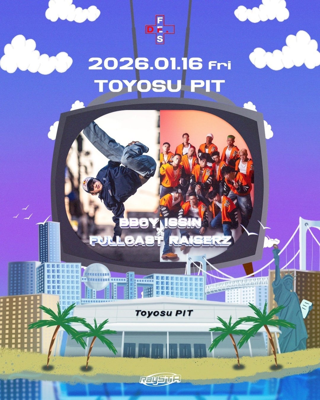 BBOY ISSINは世界最大の1on1ブレイキンバトル「Red Bull BC One World Final Tokyo 2025」で優勝した世界王者。FULLCAST RAISERZはDリーグを代表するクランプチームとして圧倒的な存在感を放っています。