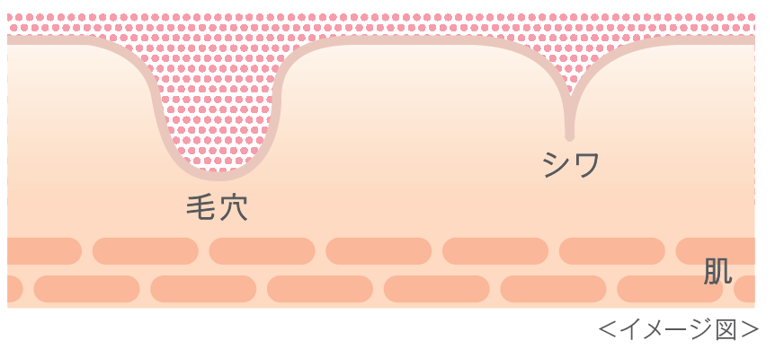 新たにフィラーフィット構造を採用。毛穴の凹凸やしわに素早く入り込み、瞬間密着して夕方まで崩れません。