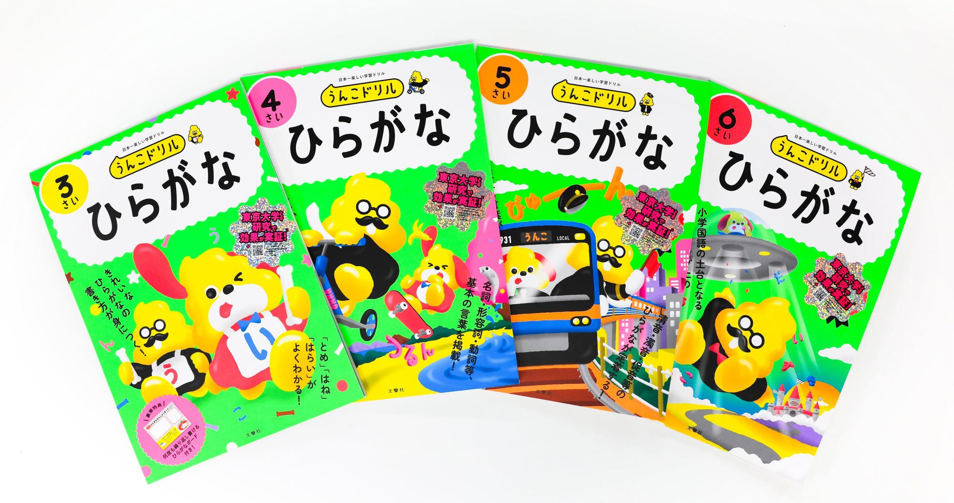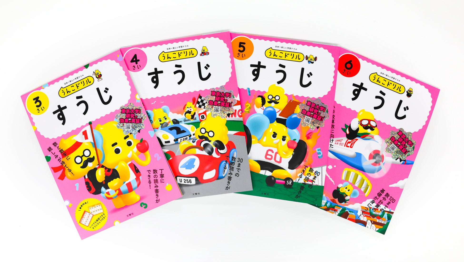 お子さまの成長に合わせた3歳、4歳、5歳、6歳の各年齢別「うんこドリル」