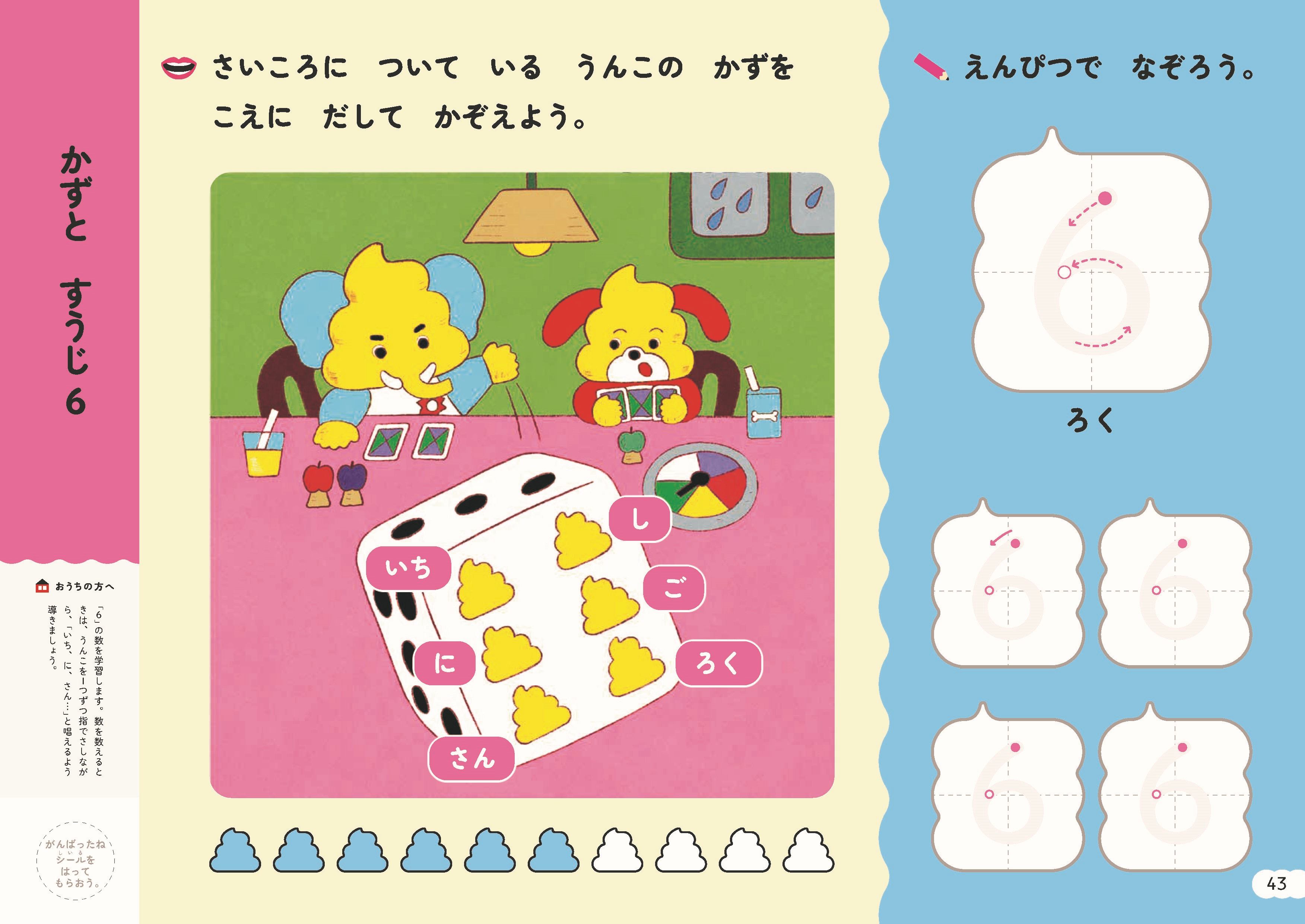 すべての問題に「うんこ」が登場します。お子さまの興味・関心を引きつけ、主体的・意欲的な学習が期待できます。また、ページごとに作業内容やイラストが異なるので、最後まで飽きずにやり遂げることができます。