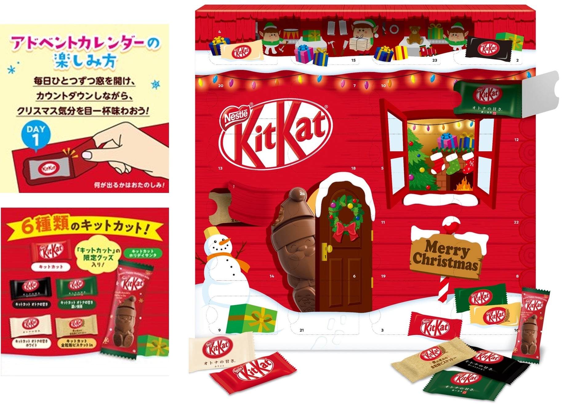 また、11月7日(月)より、12月1日~24日までの間、毎日カウントダウンしながら様々な「キットカット」を楽しむことができる「キットカット クリスマスアドベントカレンダー」を期間・数量限定で発売します。