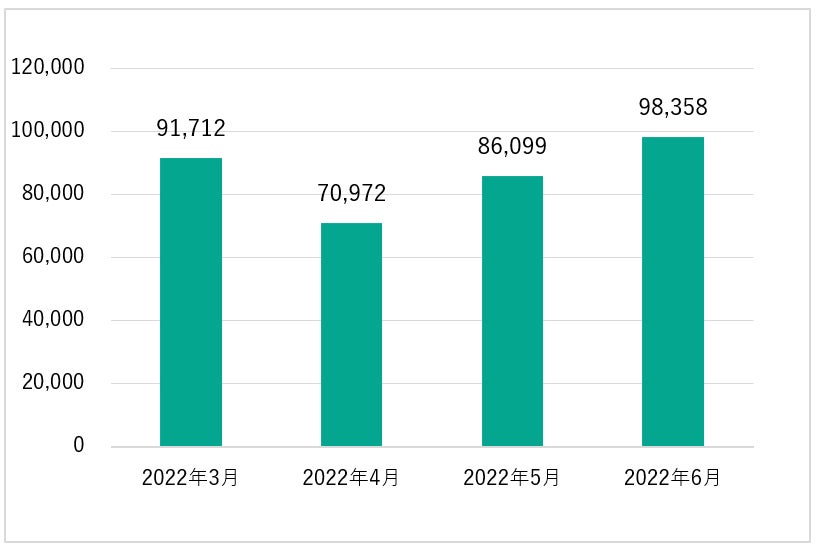 当社では、2022年3月から6月までの4カ月間に、電話をかけさせ偽の手続きを促す約35万件のビッシングメールをグローバルで検知しました。特に6月はビッシングメールの数が約10万件になり、今後も増加傾向が続く可能性が高いと予測しています。