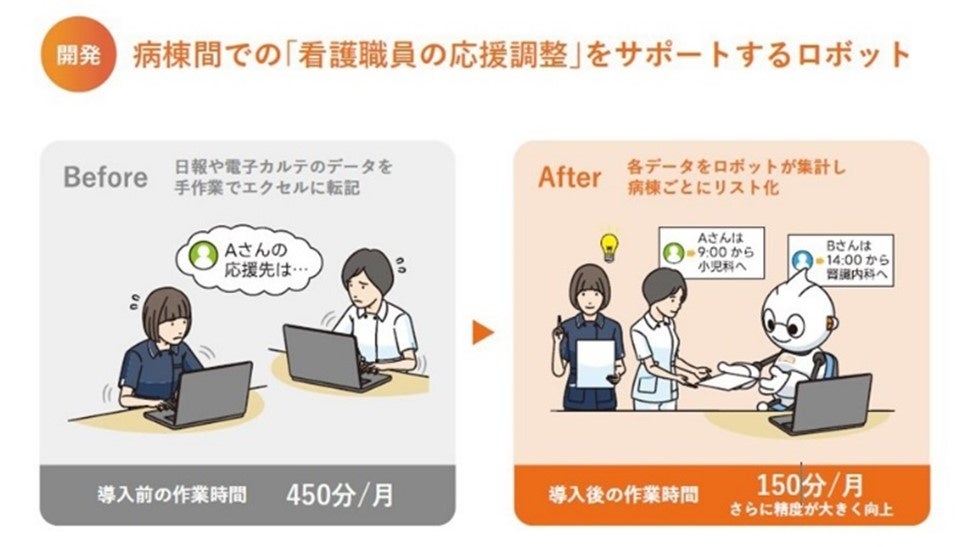 オープングループ株式会社(本社:東京都港区、代表取締役:高橋 知道)の子会社であるオープン株式会社(本社:東京都港区、代表取締役執行役員社長:石井 岳之、以下「オープン」)は、名古屋大学医学部附属病院(所在地:愛知県名古屋市、病院長:丸山 彰一)が、院内でのBizRobo!活用領域を拡大し、看護部門での業務効率化をはじめとする現場業務の改善に成功したことをお知らせいたします。