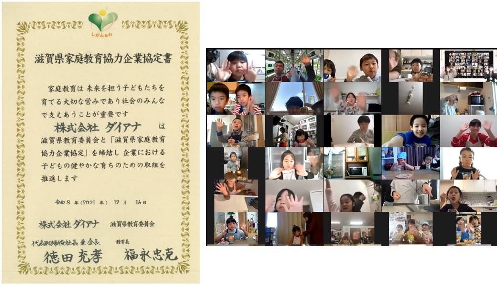 プロポーションづくりの総合コンサルティング企業、株式会社ダイアナ(東京都渋谷区、代表取締役社長兼会長: 徳田充孝、以下ダイアナ)は、滋賀県教育委員会と子どもの育ちを支える取り組みを積極的に行うため、滋賀県家庭教育協力企業協定を2021年12月16日に締結しました。