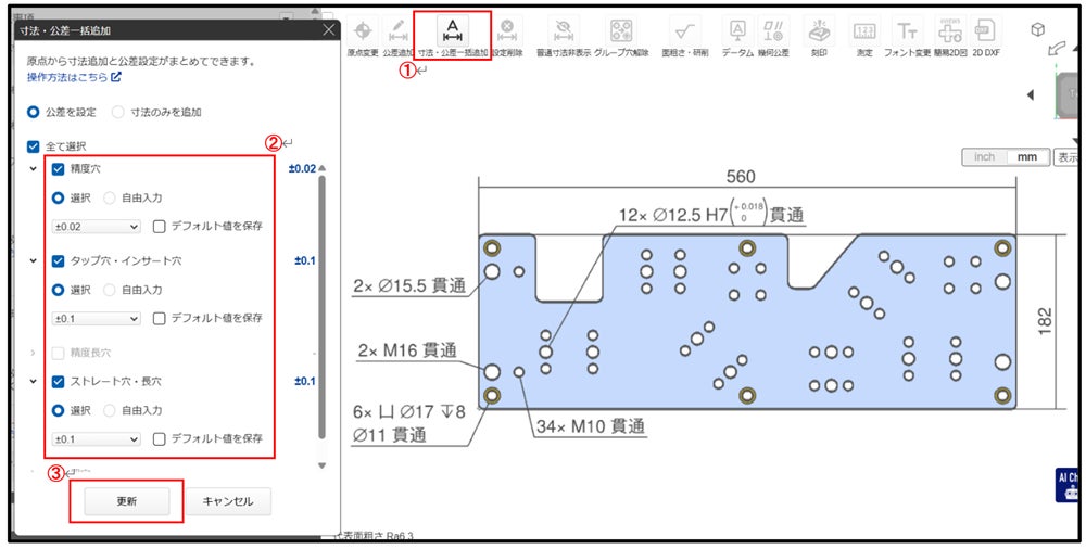 ~穴種ごとに寸法公差をまとめて設定可能に。見積もりにかかる時間を大幅削減~