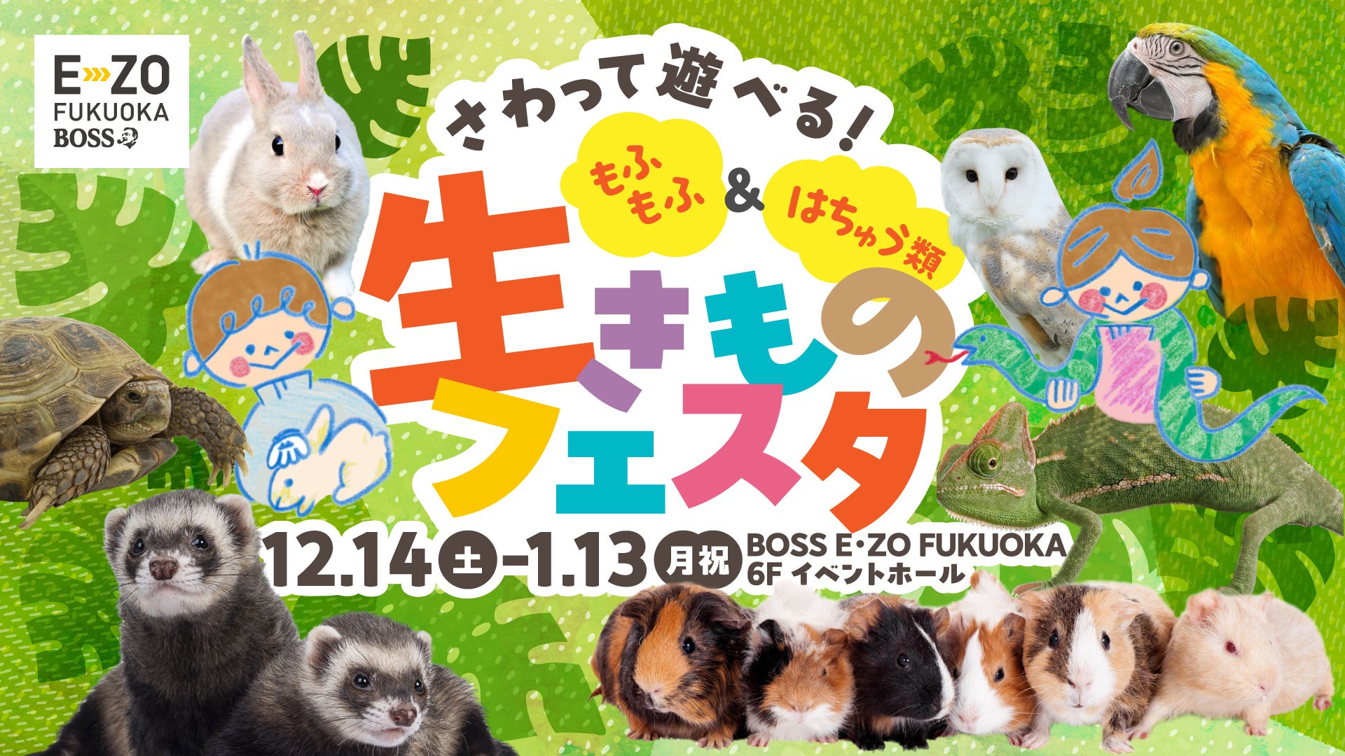 冬休みはE・ZOでもふもふ&はちゅう類&ねこ!「生きものフェスタ」&「ねこ休み展 in福岡」開催決定!