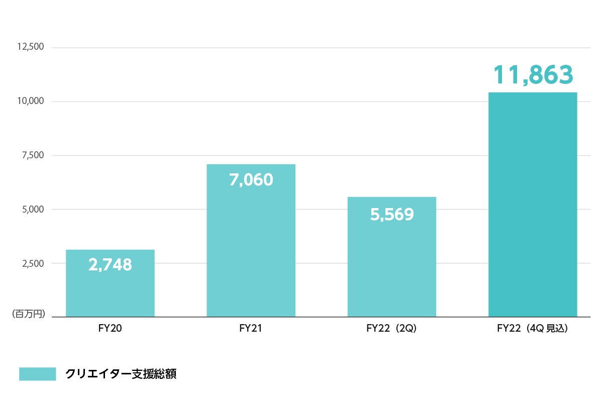 →クリエイター支援プラットフォームである「ファンティア[Fantia]」は、前期末に流通総額が初の70億を突破。2022年6月期は上半期のみで55億円(前年同期比196%)を達成し、今期末には100億円超突破を見込める勢いで成長しています。