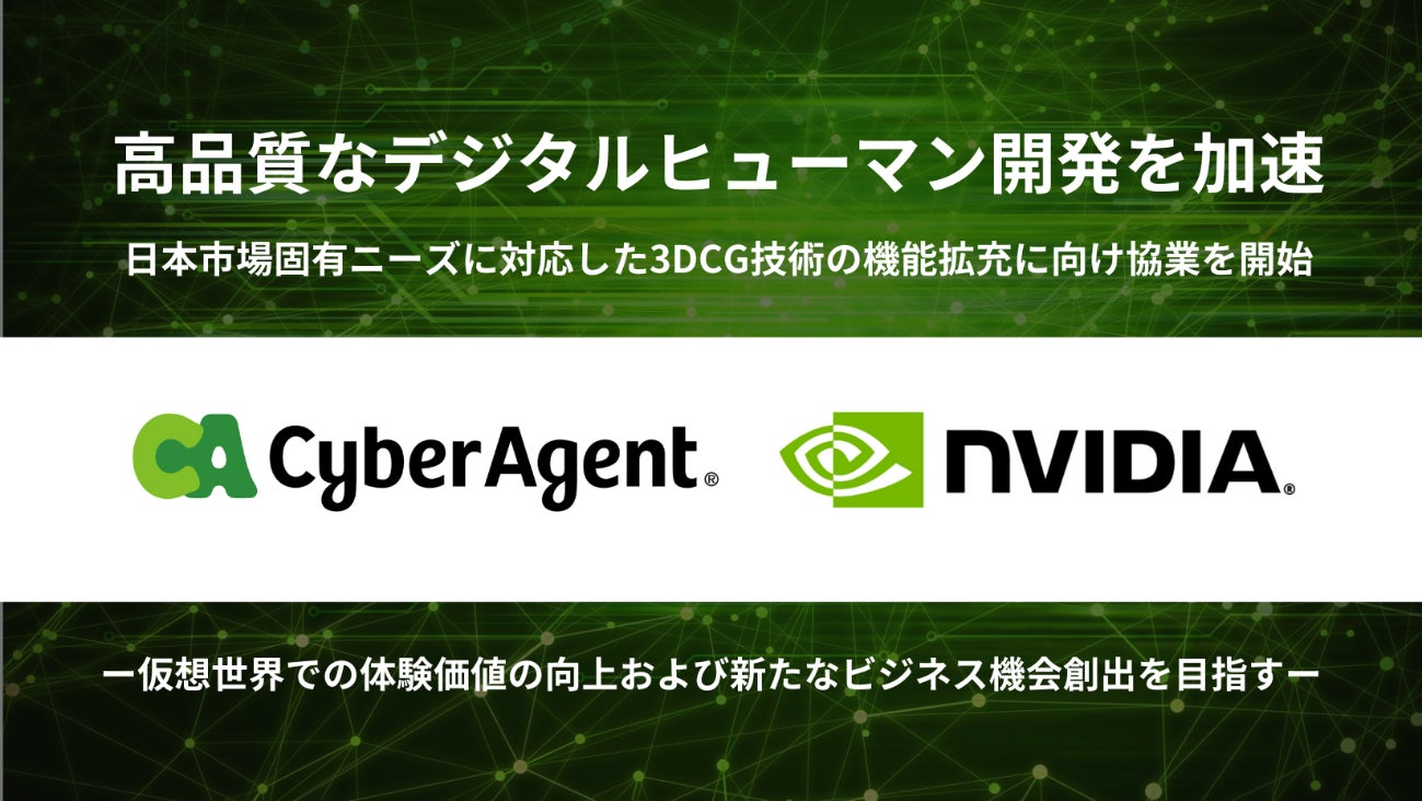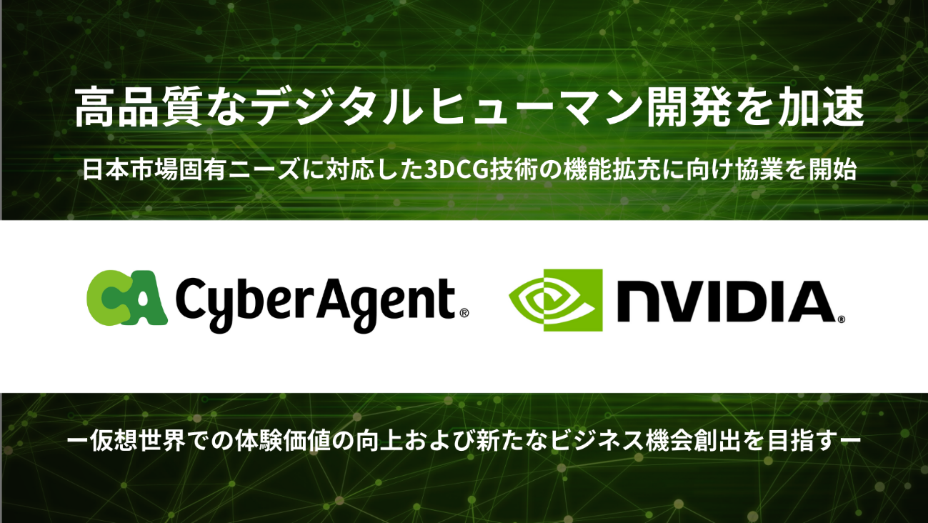 サイバーエージェントとNVIDIA、高品質なデジタルヒューマンの開発を加速 日本市場固有ニーズに対応した3DCG技術の機能拡充に向け協業を開始