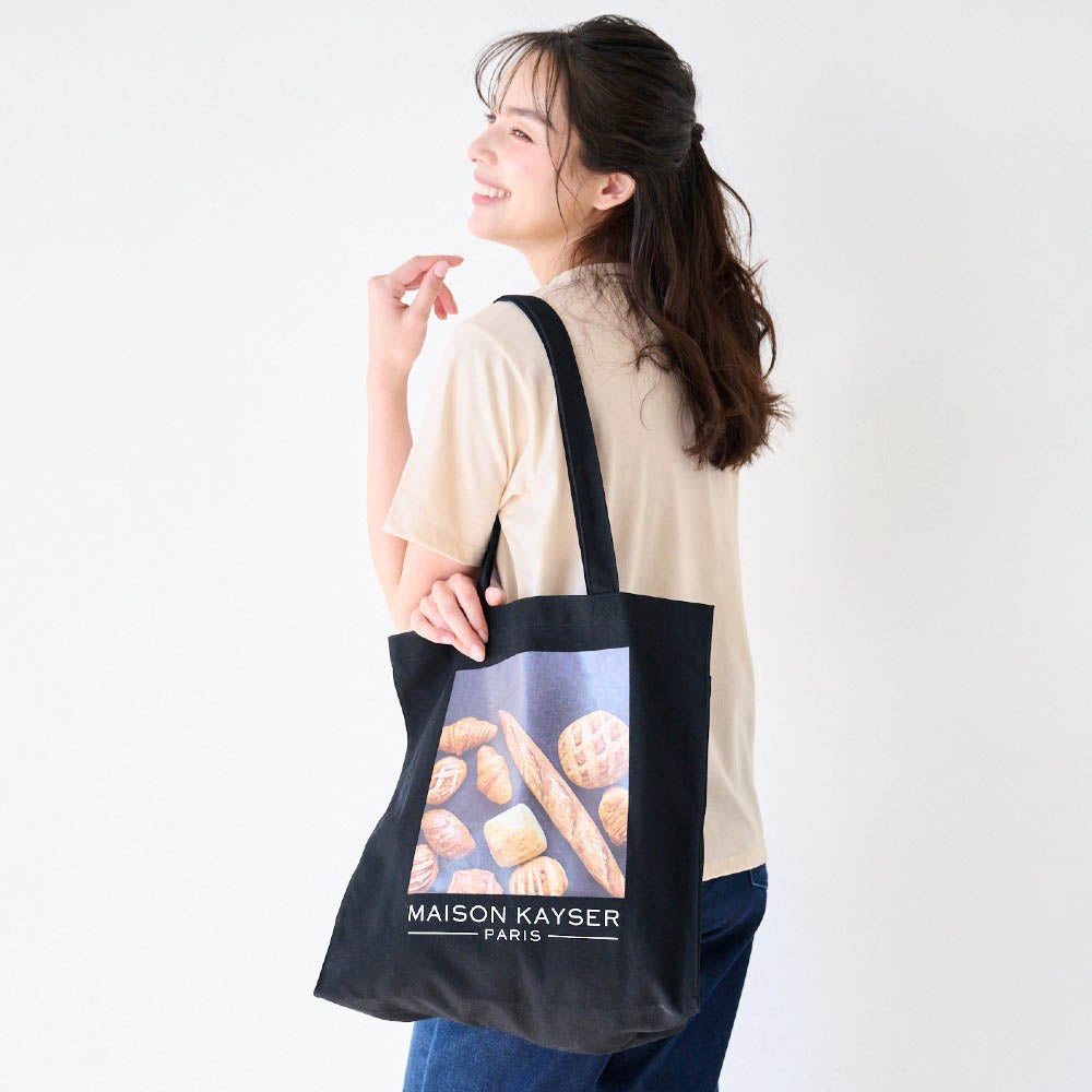 メゾンカイザーのパンをモチーフにプリントを施した、A4サイズが入る大容量のトートバッグです。13cmのマチ幅で、荷物がしっかり収まる設計です。肩紐は長めにデザインされており、肩掛けしやすい仕様です。サイドには細長いポケットを備え、水筒や折り畳み傘など、かさばりやすいアイテムの持ち運びにも便利です。内側には鍵やスマートフォンを収納できるポケット付きで、通勤や通学、マザーズバッグとしても幅広く活用できます。毎日メゾンカイザーのパンを眺めたい方におすすめです。