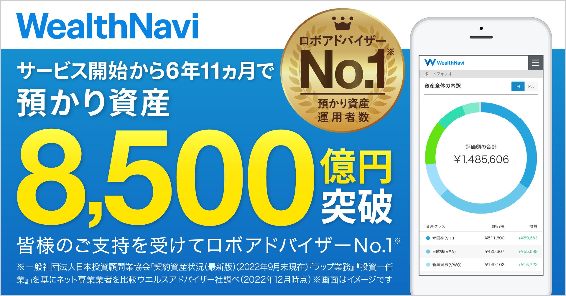 預かり資産・運用者数 国内No.1ロボアドバイザー(※)「WealthNavi(ウェルスナビ)」が預かり資産8,500億円を突破