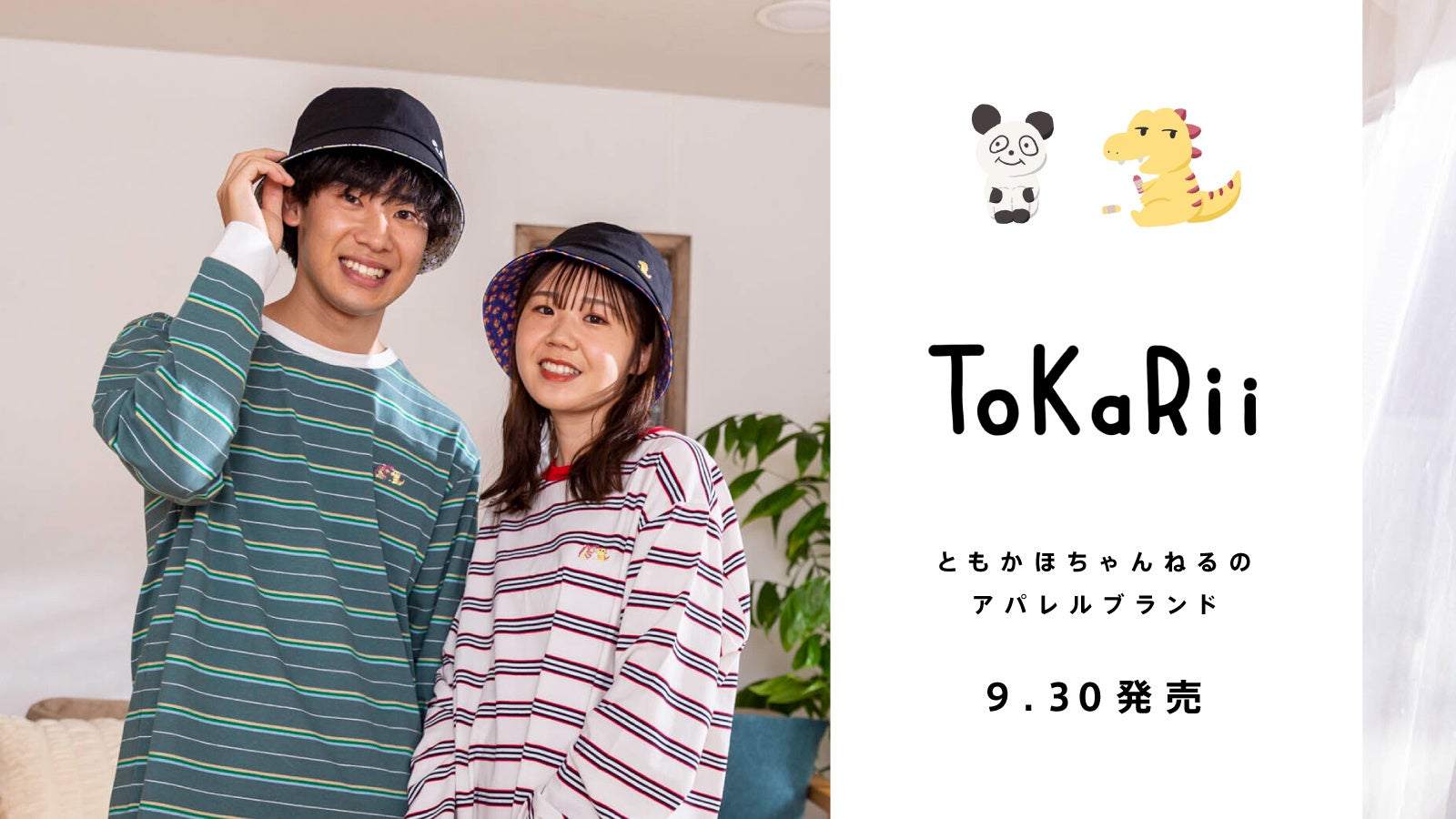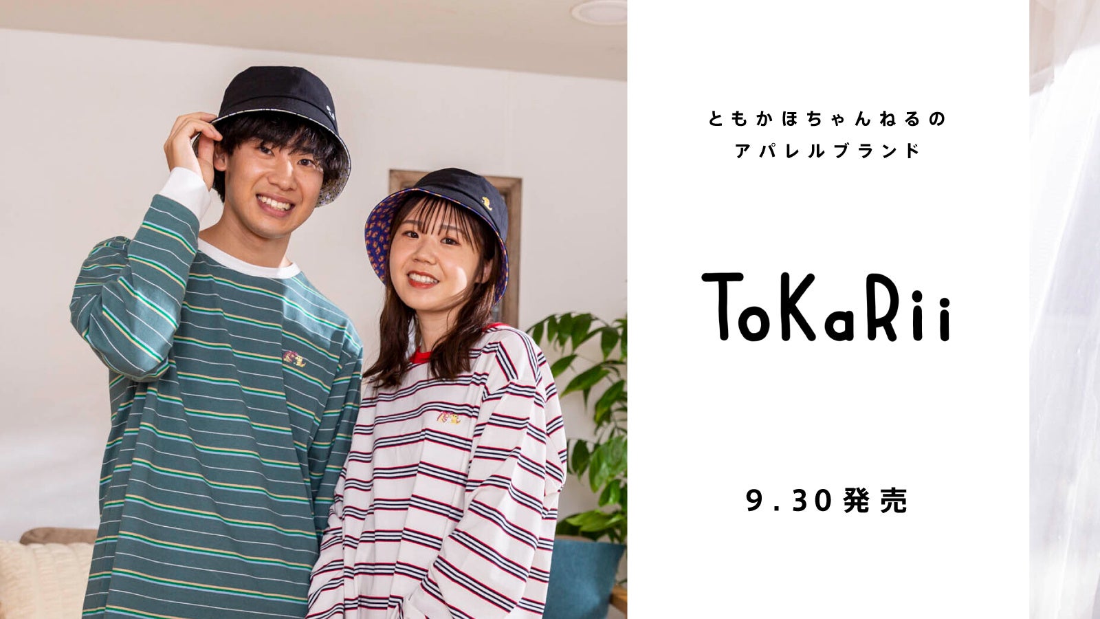 ほのぼのカップル・ともかほちゃんねるのアパレルブランド「ToKaRii(トカリー)」。9/30よりロンT・Tシャツ・バケットハットの販売をスタート!